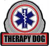 Includes a large metallic patch embroidered with the words "THERAPY DOG"