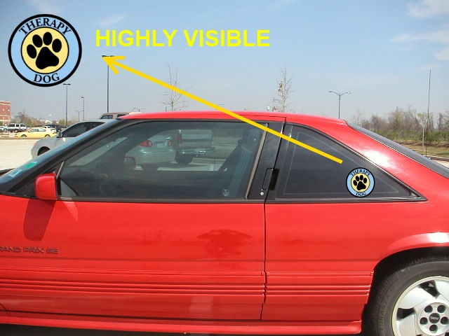 Easily identify your therapy dog with a decal. These decals can be used indoors or outdoors and you can apply this decal to any smooth surface including painted wood, plastic, glass, and metal. They can be used on windows, trucks, cars, trailers, tailgates, doors, walls, cabinets, equipment, back of a wheel chair, etc.