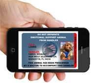 ✅ Prominent “DO NOT SEPARATE EMOTIONAL SUPPORT ANIMAL FROM HANDLER” message across the top of the card.