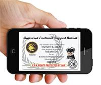 Printed handler and animal name with official ESA registration number.